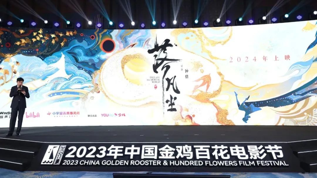 咏声动漫国漫电影《落凡尘》在第三十六届金鸡百花电影节金鸡电影市场特别活动——“星辰可期·第二届岁末雅集”电影推介会中惊艳亮相。