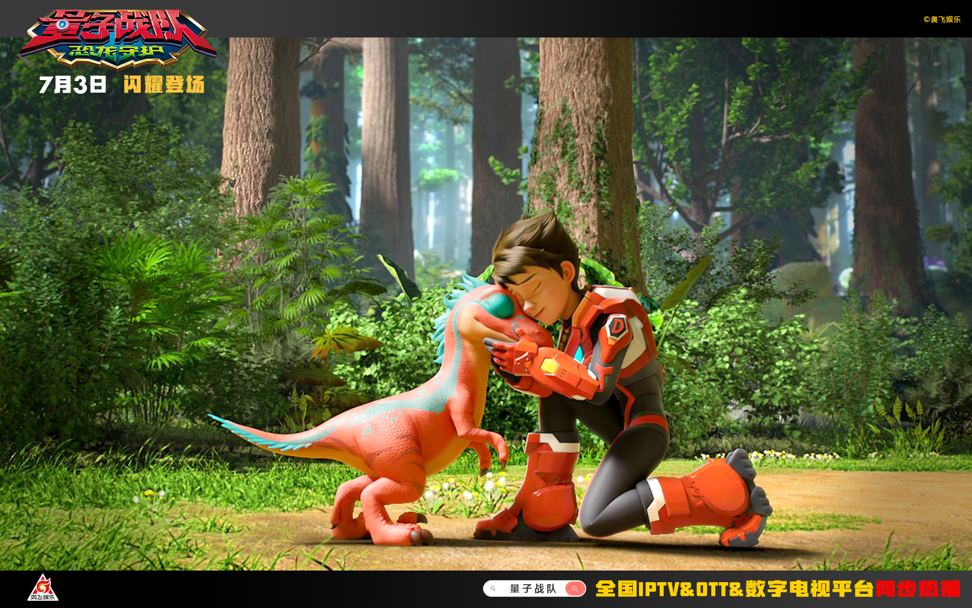 奥飞娱乐历经5年打造全新恐龙机甲新IP《量子战队之恐龙守护》官宣定档7月3日。首播更是锁定了上星卫视金鹰卡通黄金时间19:55-20:20。