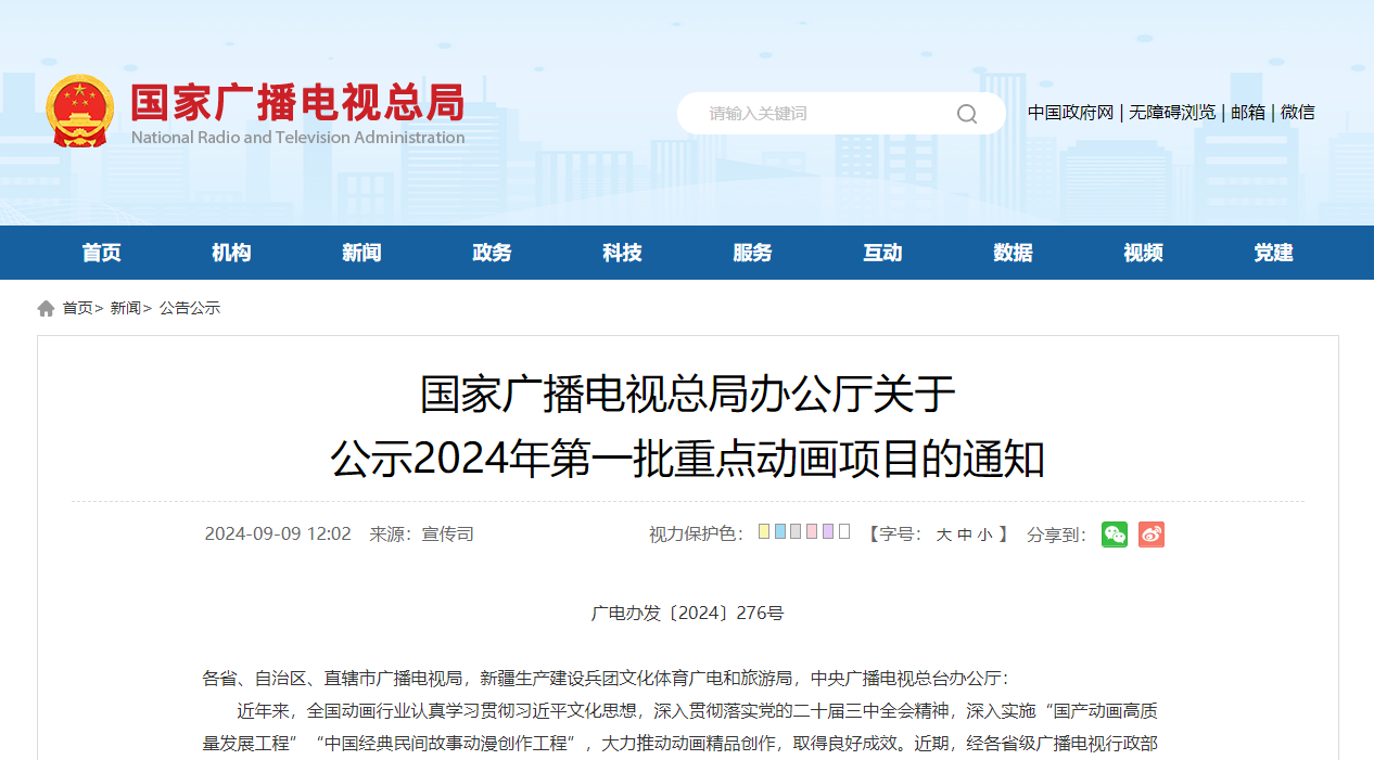 近期,经各省级广播电视行政部门和中央广播电视总台办公厅推荐,国家广播电视总局组织专家评审,评出《洛神:动起来的中国画》《小小守艺人第一季》《宁德山海奇遇记——蓝色牧场》等10个项目为2024年第一批重点动画项目。