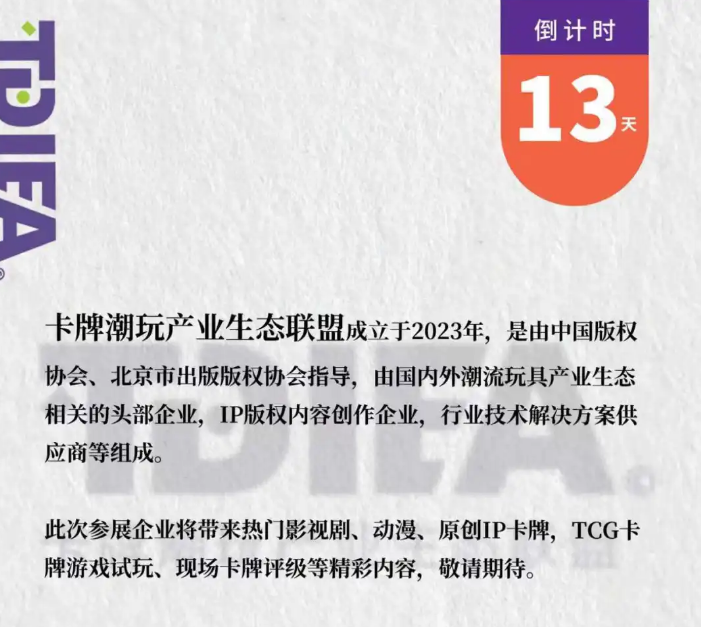 卡牌潮玩产业生态联盟是由中国版权协会、北京市出版版权协会(原首都版权协会)指导,国内外集换式卡牌游戏、桌面游戏、潮流玩具等产业生态相关的头部企业、IP版权内容创作企业、行业技术解决方案供应商、研究机构及相关单位,以“政产学研用金”模式,自愿结成的跨行业、开放型产业联盟。8月8日至11日,欢迎大家莅临C2-20/22展位,探索潮玩卡牌的无限魅力!